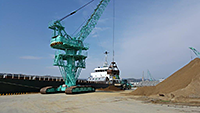 | 久慈港唯一の港湾荷役業者として、久慈港における出入貨物、主に硅石やチップ、鋼材等の積降し荷役を豊富な経験と熟練した技術を生かし、「安全・確実・効率」をモットーに行っております。 |