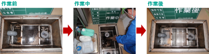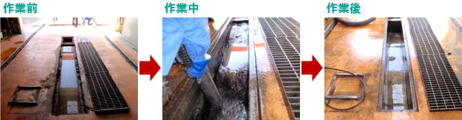 | 側溝や配水管などは土砂やヘドロが溜まりやすい反面、その形状のため清掃が非常に困難です。保有する超高圧洗浄車を用いれば、これらの設備を隅々まで清掃し、本来の機能を回復させることが可能です。 |